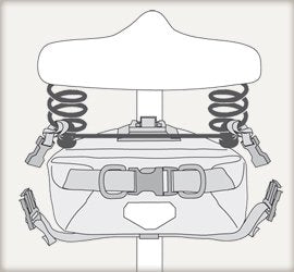 Beim Modell Saddle-Bag bieten wir auch ein Riemenset (ArtNr. F96E) an, mit dessen Hilfe dieses Modell auch an Komfortsättel oder an Konstruktionen mit abweichendem Strebenabstand (z.B. Brooks) befestigt werden kann.